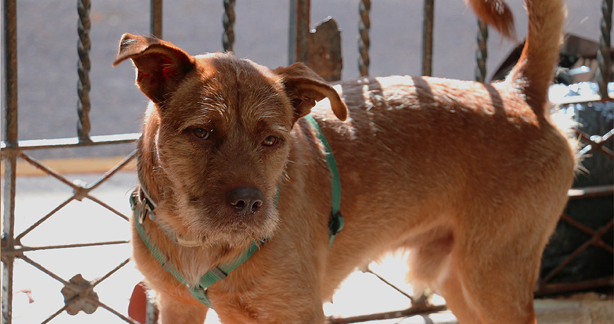 Brownie was caught in the streets of Isla. We assumed he had an owner cause he was all soft and clean and super social and even wearing a collar! But apparently, he doesn’t cause after days and days of searching no one seems to own him! We were delighted! He is an absolute dream of a dog! He is good on the leash, he’s potty trained, he loves people, dogs, and wants to play with the cats! He’s also very passive, he doesn’t react to the smaller dogs annoying him. He is wiry but also soft, the most beautiful red color ever, and his best most unique quality… He is one of those dogs that smile with all his teeth! Hard to catch on a picture mostly cause we are laughing whenever he does that!