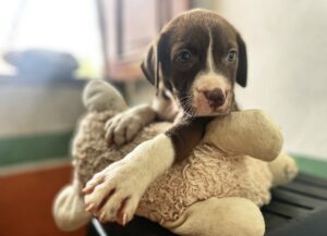 We got a report of a high pregnant dog, Willow. The day we went to check on her she gave birth to her 9 puppies in a small jungle part full of trash. Those days it was raining so much that it was no question we had to take them with us. As we really struggle with space we were grateful that we found a foster home. 6 weeks later they came now to the temporary shelter on the island. Ash and his siblings good their first vaccine, soon we will spay and neuter the 9 so they can go to their forever homes.