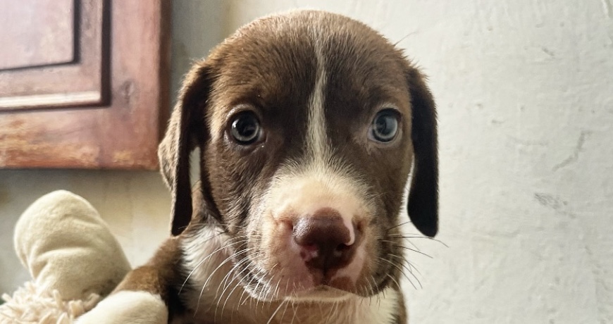We got a report of a high pregnant dog, Willow. The day we went to check on her she gave birth to her 9 puppies in a small jungle part full of trash. Those days it was raining so much that it was no question we had to take them with us. As we really struggle with space we were grateful that we found a foster home. 6 weeks later they came now to the temporary shelter on the island. Ash and his siblings good their first vaccine, soon we will spay and neuter the 9 so they can go to their forever homes.