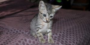 Aussie is a sweet kitten that would love and deserves a good home. He has the marking of a grey tiger. Aussie and his two brothers, Kiwi and Bali were left in a box for the morning gal to find when she went to work to begin the morning ritual for the dogs at Mundaca. They were in okey condition but their skin needed to get healthy and they needed some nutritious food. But now they are all healthy and very soon ready for their new home. Watch how Aussie, Kiwi, and Bali change as we update their photos with their changing looks.