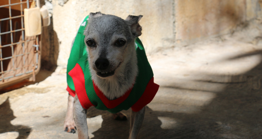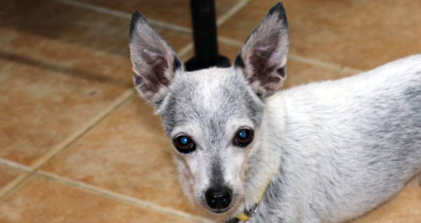 He looks like a wolf in a chihuahua size! He’s calm and well-mannered, though he’ll defend his little bed if he has to. He is now feeling so much better after 9 teeth were extracted.