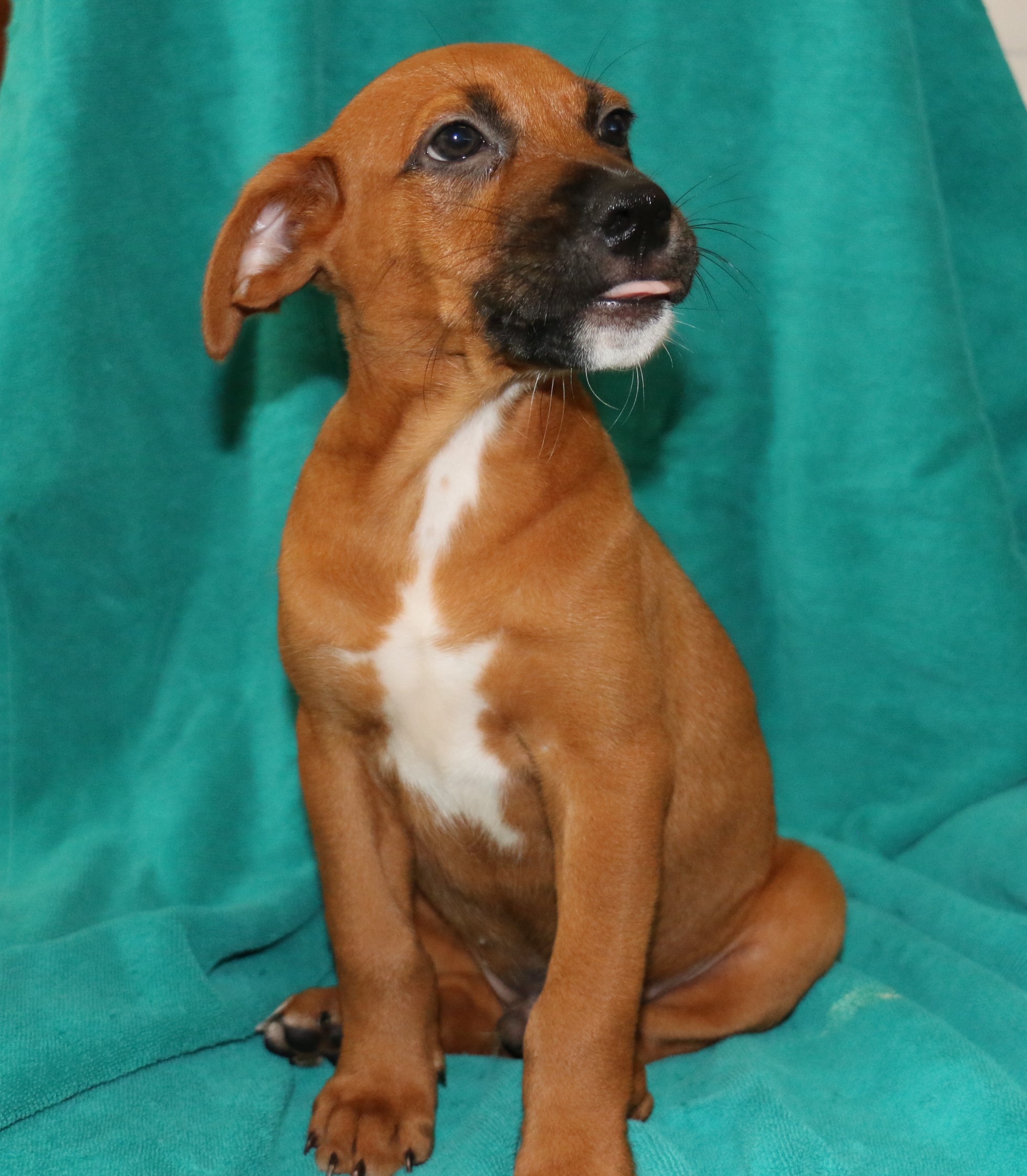 Bonito means beautiful in Spanish. This little guy really earns his name. Bonito and his 9 bothers and sisters arrived at Isla Animals when they were only 4 days old with their eyes still shut. Their mom was so afraid of everything, everyone and had trust issues. Fast forward to current day and Mentira, the mom, and her beautiful pups are thriving. Bonito is a handsome boy with a dark muzzle and the cutest white hair under his bottom lip Look at this sweet face and you can tell he is just looking for a family of his own to cuddle and love.