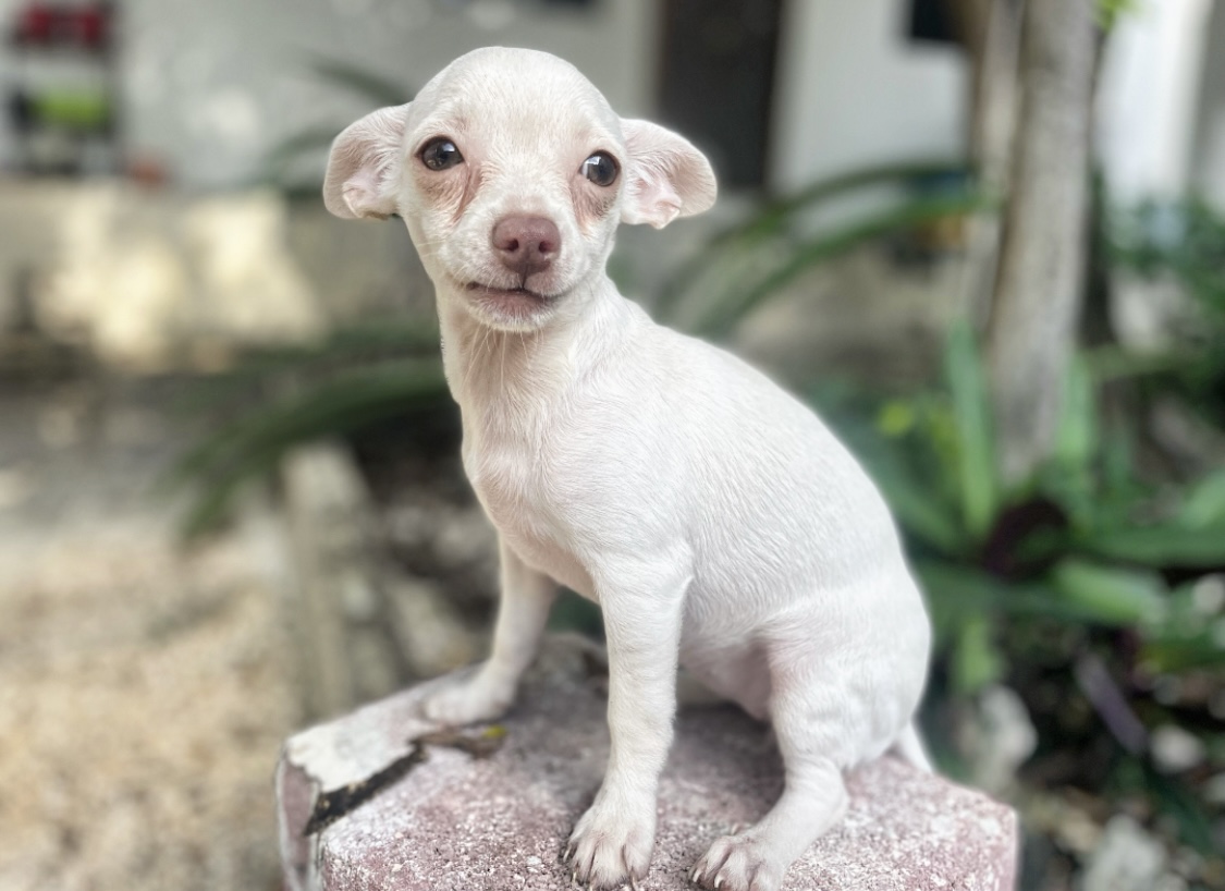 Bree and Pinky are 2 chihuahuas that were surrendered at the age of 4 weeks, their background is blurry, we suspect maybe the mom died. In any case, we took them in with some help from a foster in Cancun and they came to live with us when they were under 2 months old. Now they are almost 4 months old and happy confident puppies!