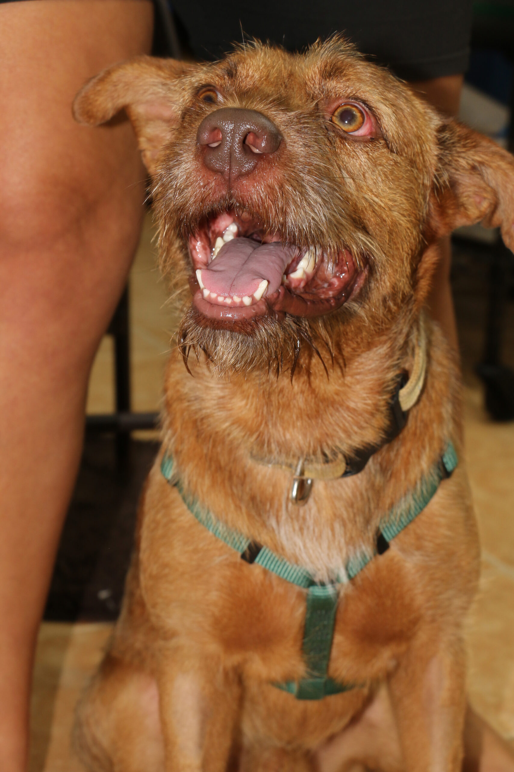 Brownie was caught in the streets of Isla. We assumed he had an owner cause he was all soft and clean and super social and even wearing a collar! But apparently, he doesn’t cause after days and days of searching no one seems to own him! We were delighted! He is an absolute dream of a dog! He is good on the leash, he’s potty trained, he loves people, dogs, and wants to play with the cats! He’s also very passive, he doesn’t react to the smaller dogs annoying him. He is wiry but also soft, the most beautiful red color ever, and his best most unique quality… He is one of those dogs that smile with all his teeth! Hard to catch on a picture mostly cause we are laughing whenever he does that!