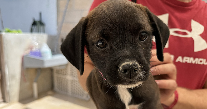 These three girls with curly tails and smushy faces were dumped in the highschool on Isla Mujeres in a cardboard box. Of course, we took them in and they are thriving! They are social, sweet and playful, love cuddles and love exploring the world around them!