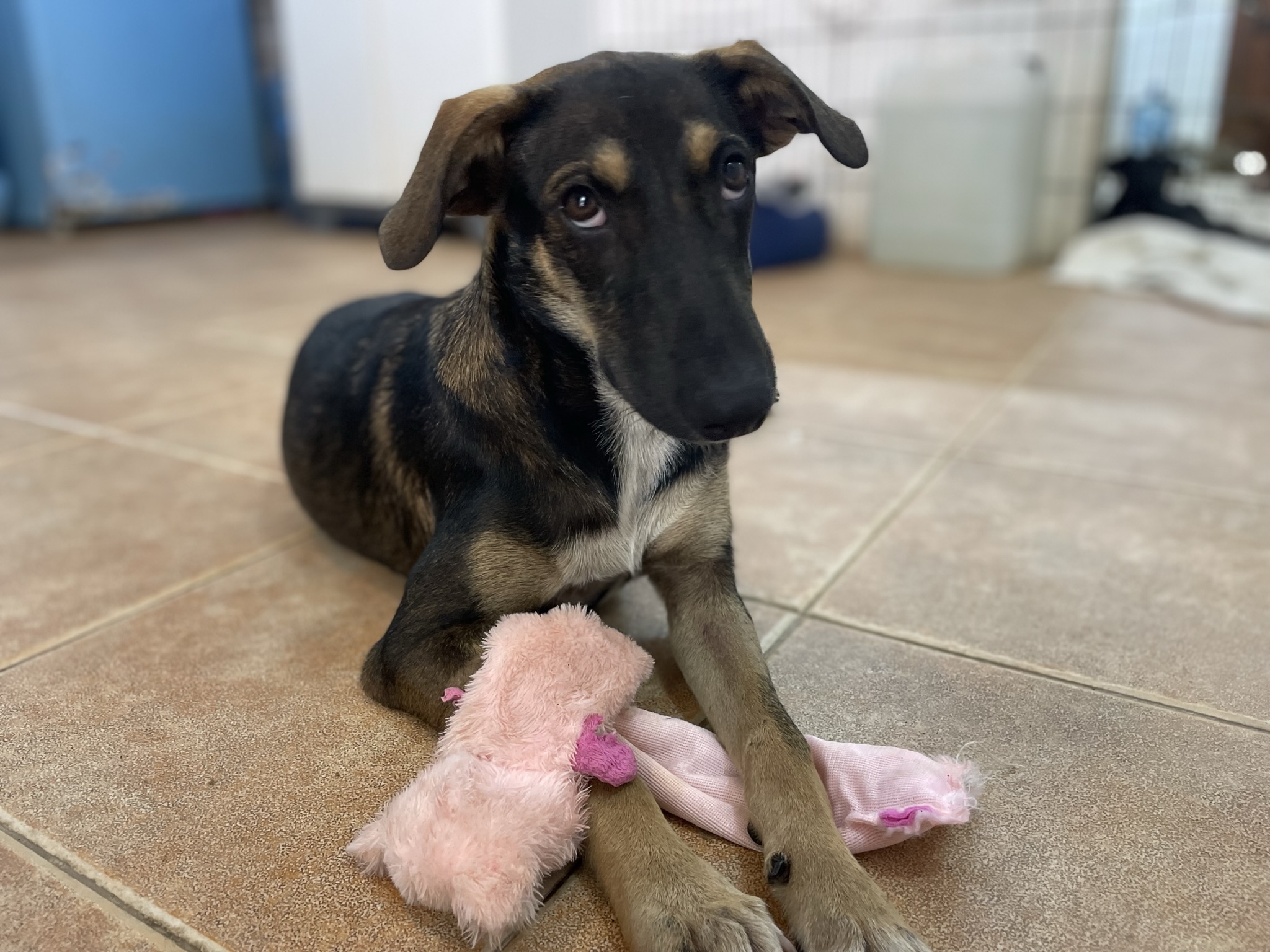Chica looks like a shorthair German Shepard mix, she has around 10 kg and is super motivated to learn tricks!