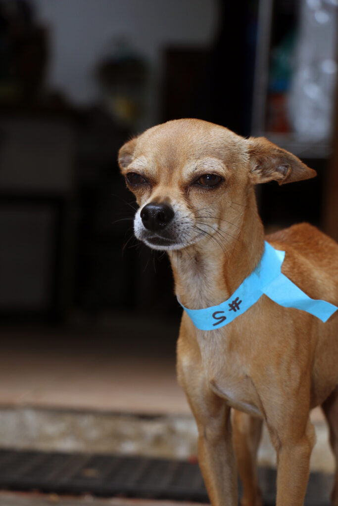 Chulo is an awesome chichuhua!!!!! Probably 5 years old, though one vet told us 3.. his teeth were in bad shape and e got his all fixed up and neutered too! Sadly, he also has ehrlichia… so a month of treatment! And oh boy 3we can tell the difference… he’s starting to look a lot better (soon we hope to show you fat photos of Chulo!)