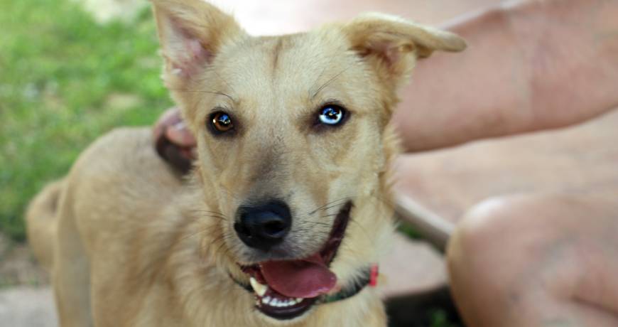 Duke was abandoned on the island. His owners moved to another place and left him there. His neighbours took care of him, but he couldn’t keep him, so they asked for our help. Duke is a handsome golden mix of about a year old. The funniest and cutest thing about him is that he has a brown and a light blue eye!