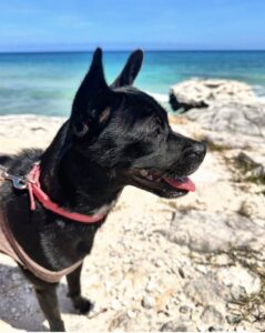 Super sweet, good with dogs, cats, kids. Gucci is a treat of a dog! She is almost fully potty trained and while she does get bored when left alone, she loves going out for adventures and she’s great on the leash.