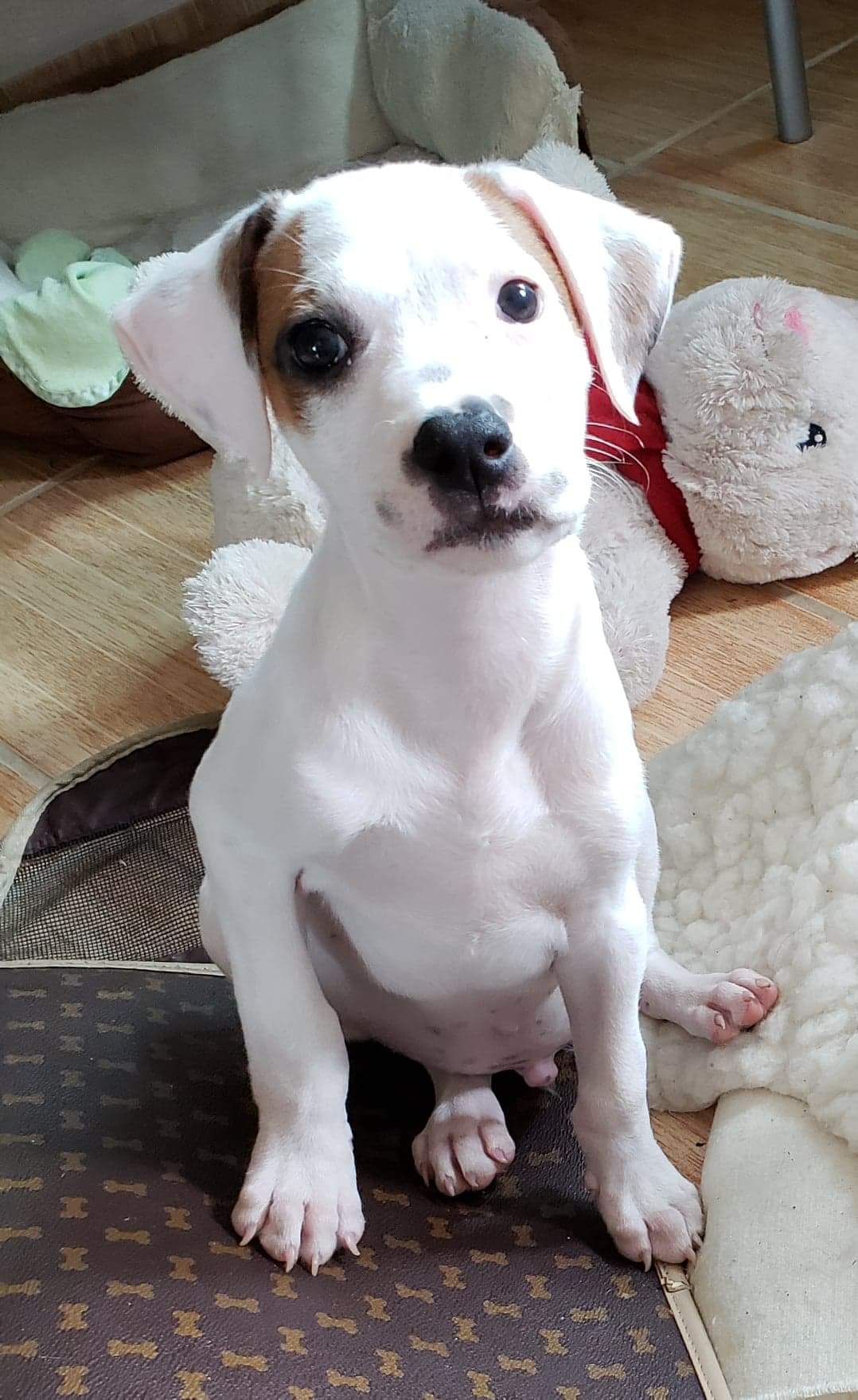 Jack Daniels was brought by some kind folks who convinced a drunken man to surrender him at 2 weeks old! He was covered in fleas. He has grown to a lovely pup, full of energy and love. He will be a big boy and appears to be a boxer lab mix. He has been in a foster home with other dogs the entire time. He just loves people and dogs!