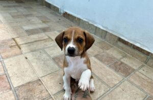 We received the video of Chestnut in a trashy jungle with her newborn puppies, she was covered in ticks. How could we have said no to her! As soon as we had her we gave her a bath and after four hours she was almost tick free. We named her three puppies after cows as they are chunky, hungry cows!