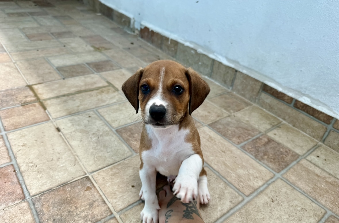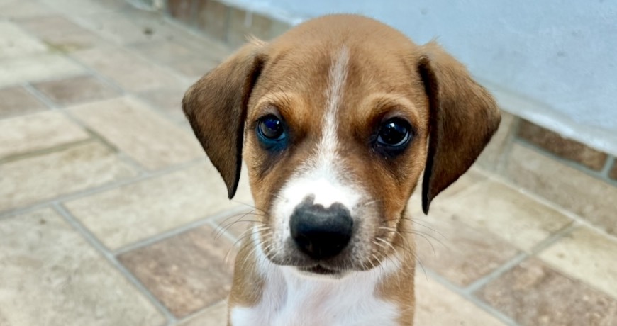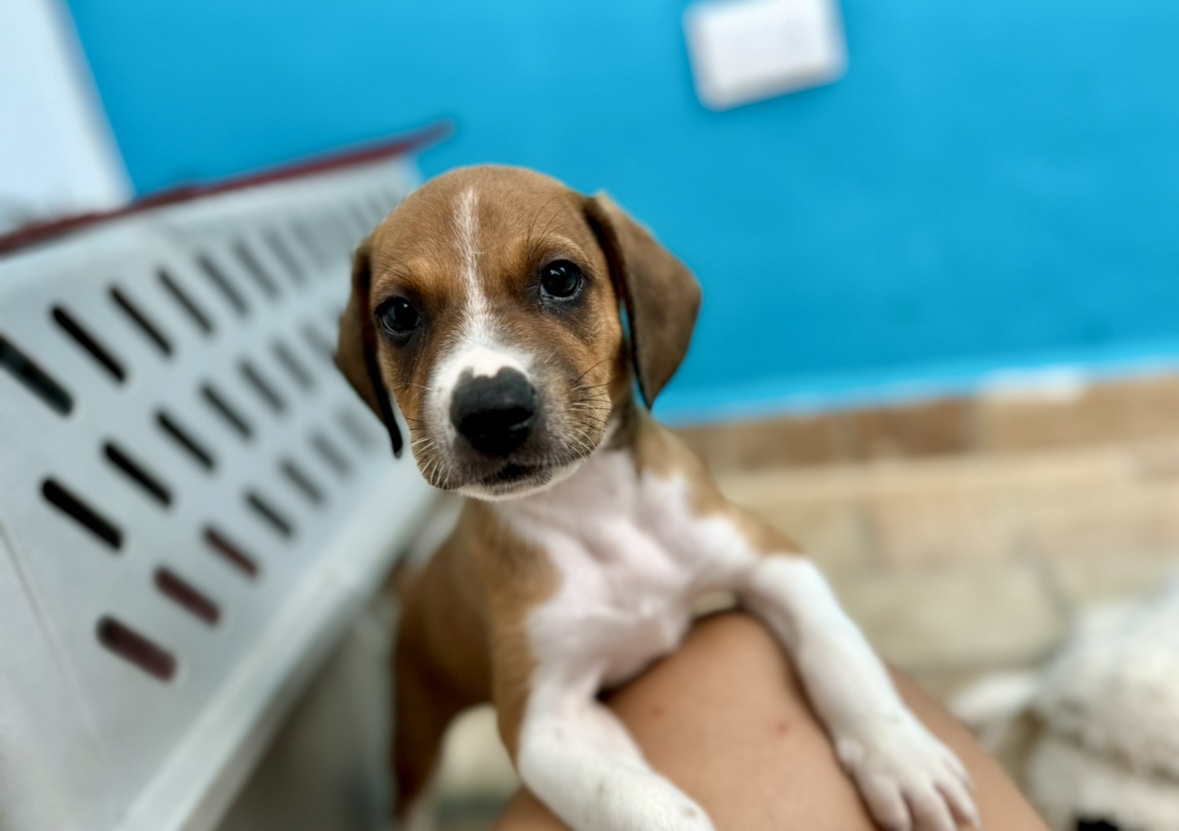 We received the video of Chestnut in a trashy jungle with her newborn puppies, she was covered in ticks. How could we have said no to her! As soon as we had her we gave her a bath and after four hours she was almost tick free. We named her three puppies after cows as they are chunky, hungry cows!