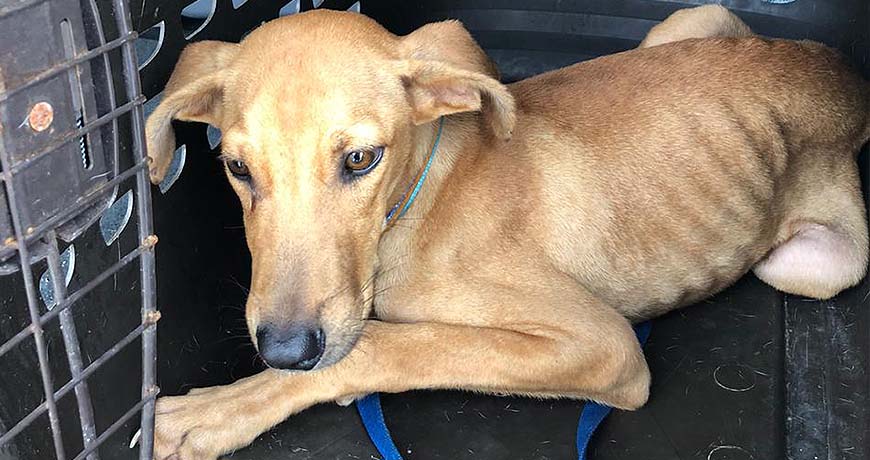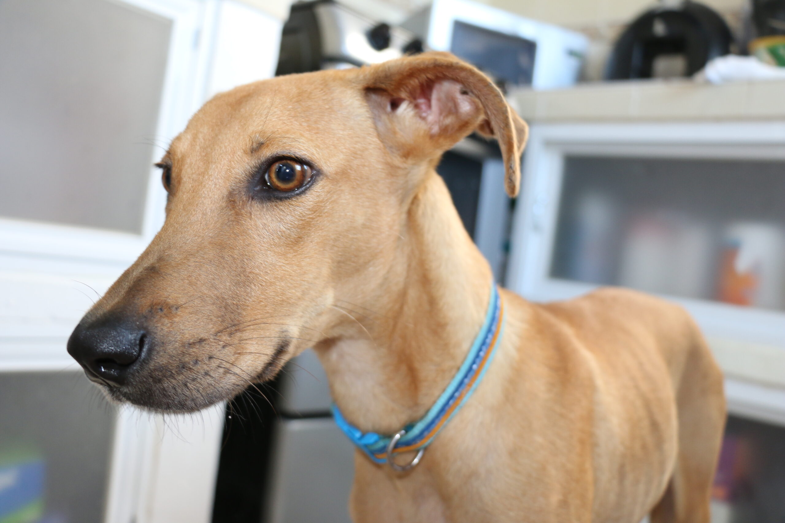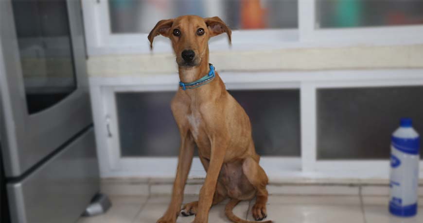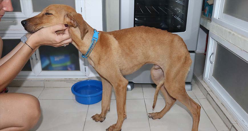 He came to us clearly malnourished. He was so skinny! Just a few days have passed and he has adapted beautifully. He loves people and other animals (gets along with other dogs and also cats). And he loves eating! He has already put on some weight and it’s looking gorgeous with his floppy ears.