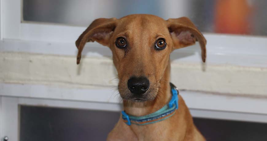 He came to us clearly malnourished. He was so skinny! Just a few days have passed and he has adapted beautifully. He loves people and other animals (gets along with other dogs and also cats). And he loves eating! He has already put on some weight and it’s looking gorgeous with his floppy ears.