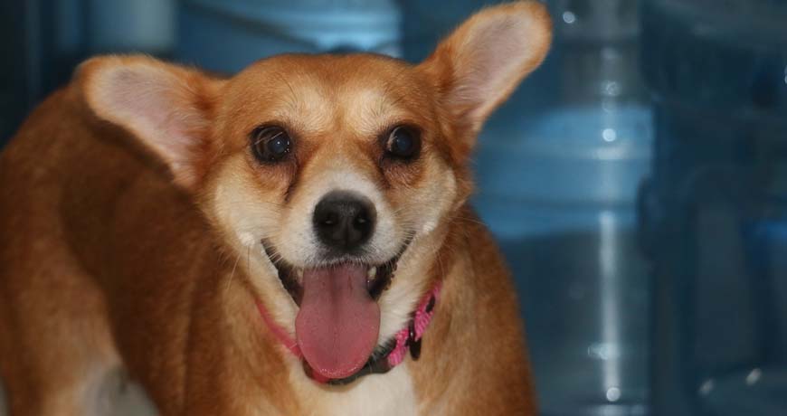 She’s a mix of corgy and chihuahua and charms everyone with her long tongue and happy smile. Rescued dogs are so grateful!