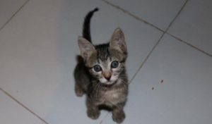 Kiwi is a sweet kitten that would love a good home. He has the marking of a grey tiger. Kiwi and his two brothers, Aussie and Bali were left in a box for the morning gal to find when she went to work to begin the morning ritual for the dogs at Mundaca. They were in okey condition but their skin needed to get healthy and they needed some nutritious food. But now they are all healthy and very soon ready for their new home. Watch how KIwi, Aussie and Bali change as we update their photos with their changing looks.