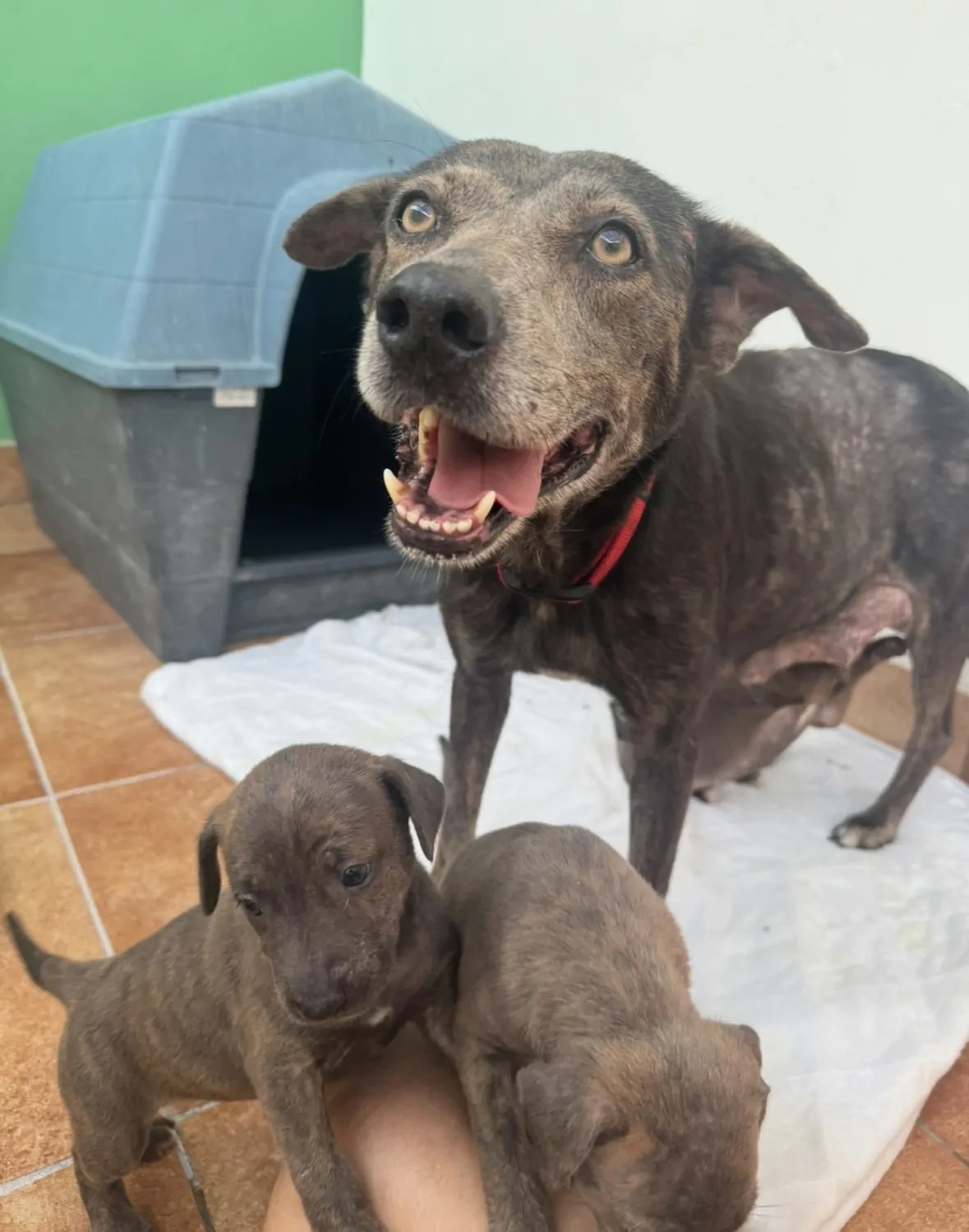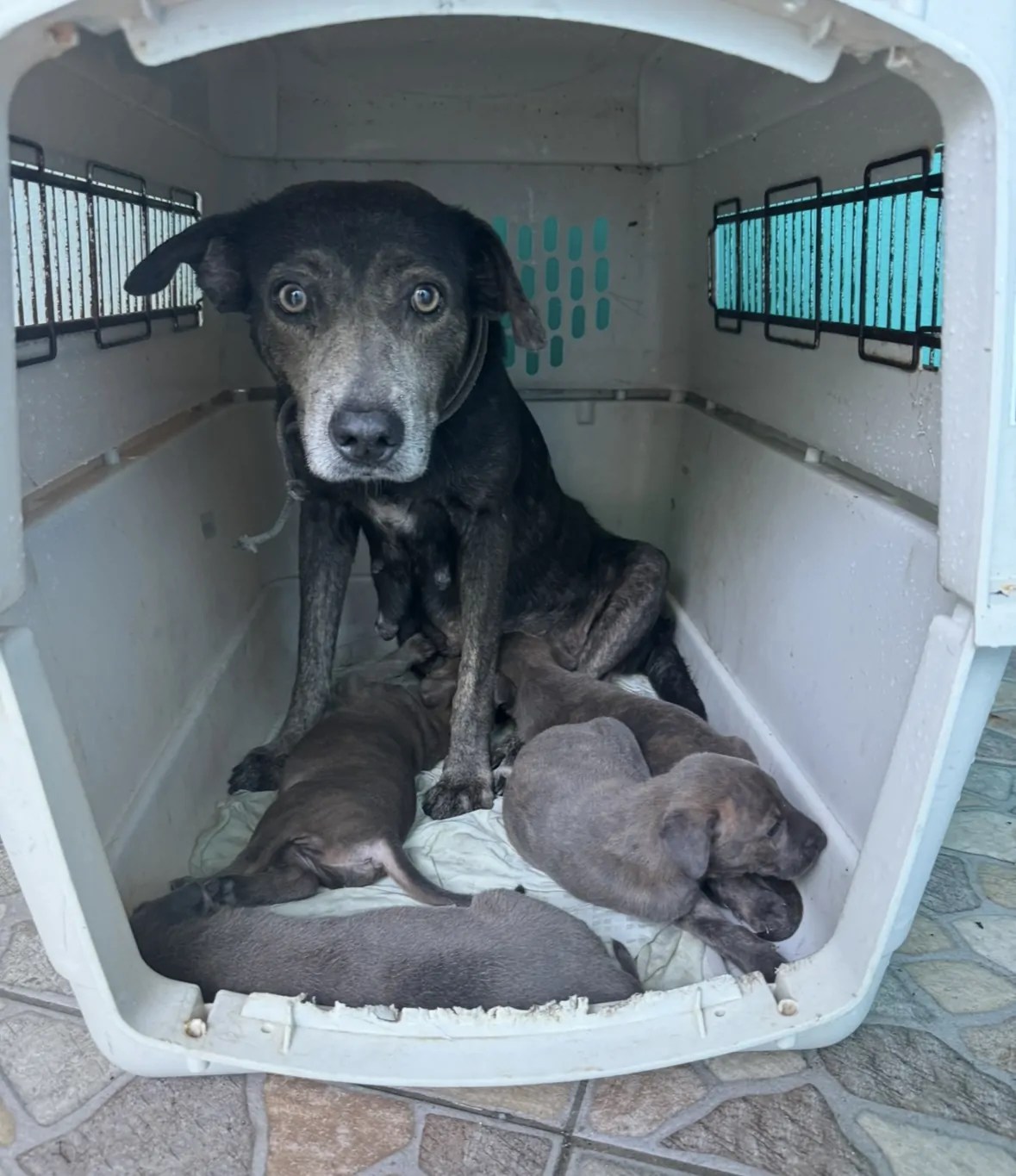 Lady’s story is a heartbreaking one we hear to many times. As she got pregnant her owners didn’t want her anymore and dumped her with her 4 little puppies. Luckily there where people feeding her and contacting us if we could take the family.