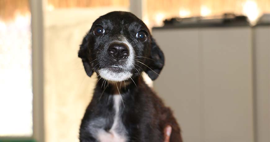 Meadow is a playful puppy, a bit shy at first, but full of love to give. She’s all black with a white spot on her nose and white on her chest (if you look closely it even looks like the shape of Isla Mujeres!)