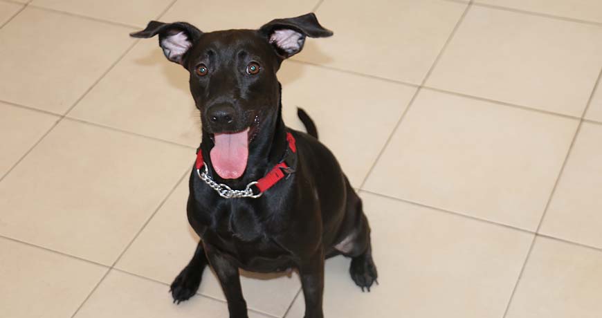 She is a sweet girl, full of energy, good on the leash, and excited to meet people! She is not cat-friendly but does well with other dogs. She does need a bit of training… and a lot of exercise to control all her energy! but she will make it worth it!