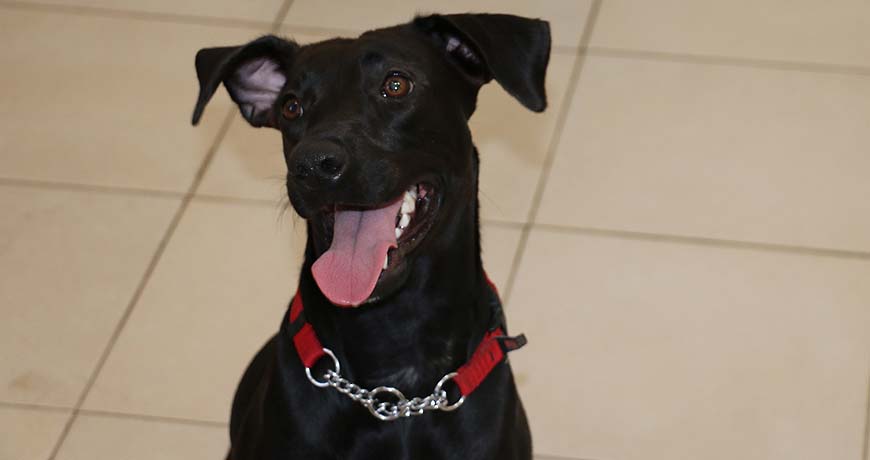 She is a sweet girl, full of energy, good on the leash, and excited to meet people! She is not cat-friendly but does well with other dogs. She does need a bit of training… and a lot of exercise to control all her energy! but she will make it worth it!