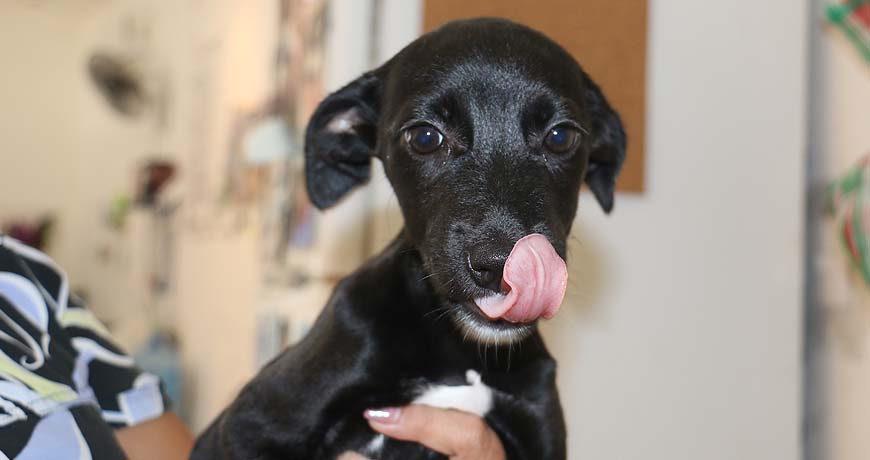 With lots of love and daily baths, she’s getting so much better! She’s a curious little thing and loves her food, so come by Mundaca to give her a treat and enjoy a puppy cuddle!