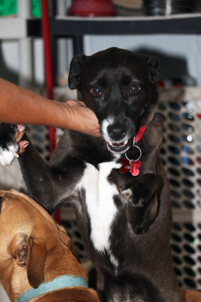 Negrita comes from a house in Cancun from where we took other dogs. Her sister, Tina was adopted long ago. Negrita was left behind until now cause she was very shy. However, she has been in foster for 2 months and has changed so much!!! She comes now asking for loving and knows her name and she is loving the shelter! Such a sweet dog with so much potential! she is quiet and calm, doesn’t bark and is looking for her human, someone who understands her past and is willing to make her feel safe so she can become the amazing dog she is destined to be! Oh… and someone willing to give her endless treats cause that is her favorite thing! And walkies 🙂