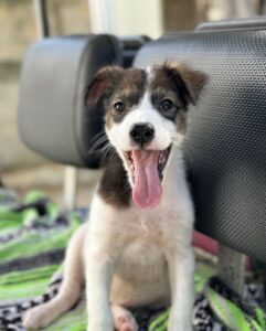 Nila got dumped on the island. She is a freakin cute, little, fluffy puppy! We are deeply in Love with her. We guess she will be a medium/big sized dog!