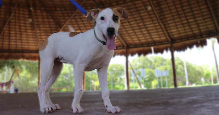 You can have a play date with Ocho at the Isla Animal Shelter at the Mundaca Palapa.