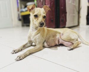 Petite is the mommy of our 4 Cookie Chihuahuas. We guess she is about 2 years old. She was found in Cancun crossing a big road and on the next day she gave birth to her puppies. Petite loves to explore, she is super social with other dogs and loves to play. Cat are fun to chat though.