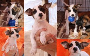 Romance is from the Love Pup Group. These puppies were found on Valentines day and they are all such loves! Romance is a photogenic little girl with a great personality . She has some white, some brindle spots, and some dark spots. She even has ears that are very distinctive. You get it all with Romance. She is very cute . Stop in between 10:30 and 4:00 at the Mundaca Palapa to check out the pups and adult dogs that are waiting for their own family!!
