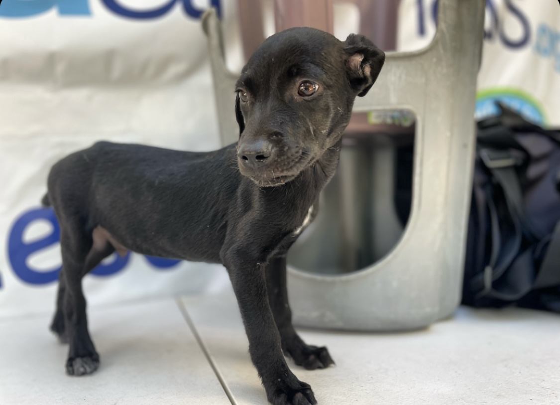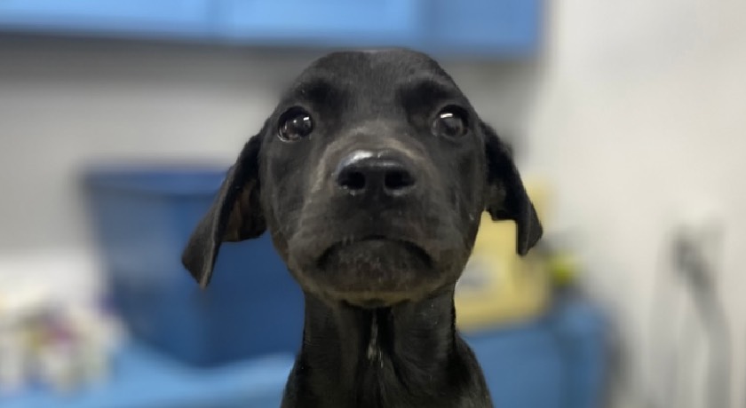 Schmidt is a black, beautiful boy. We guess he will be a small to medium sized dog. Schmidt is super curious and loves to explore! He is social, playful and really funny!