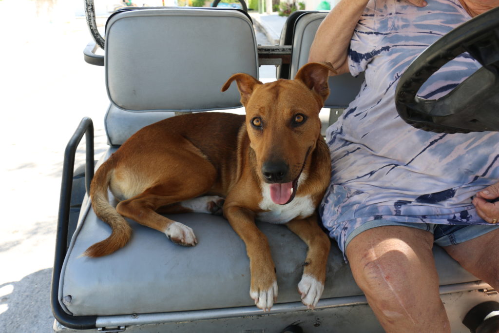 Scooby was found by some of our amazing volunteers in a poor neighborhood on Isla Mujeres. He is the SWEETEST dog and he loves going for rides on the golf cart.