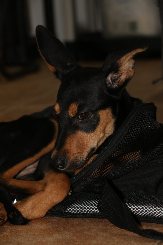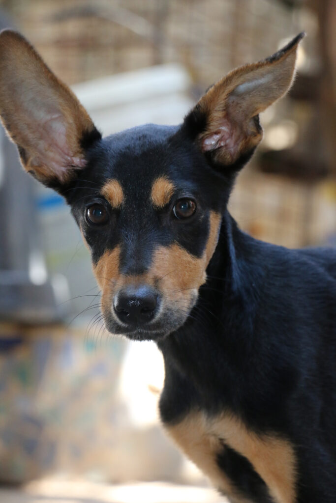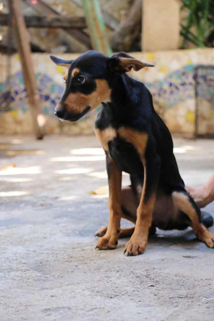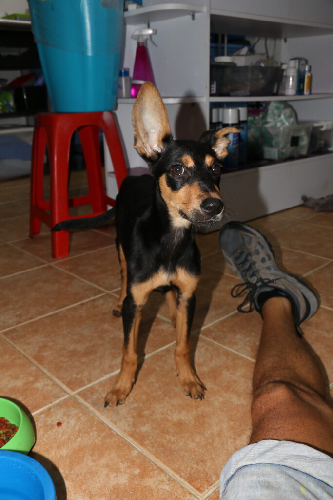 Skeena was abandoned at the door of the department of Ecologia on the island, right in front of the shelter between Christmas and New Year’s. She was tied up there, and so every time we would go to the shelter we would see her sitting there, skinny girl. Of course, even though we do not have any more space to hold dogs, we weren’t gonna leave her there… So now she is with us.