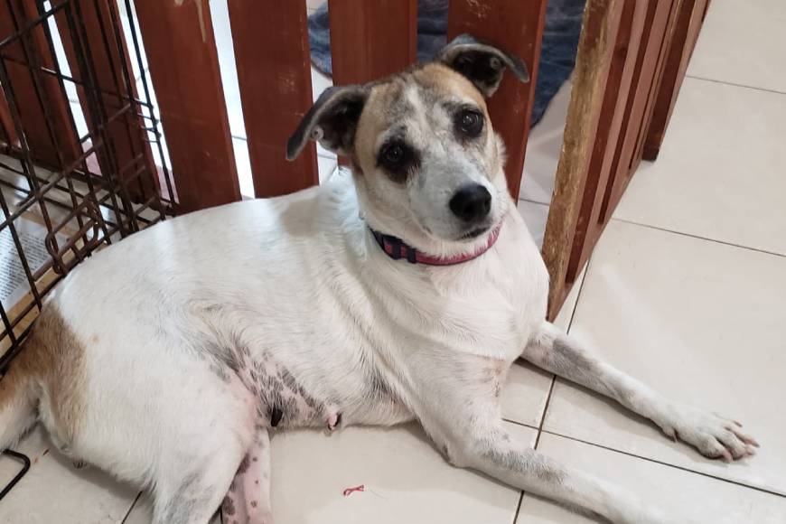 Sorda is of the 30 animals we rescued from Rancho Viejo Isla Mujeres. She is deaf, but that doesn’t stop her from being a social, loving, active doggie.