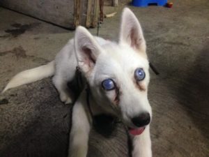 Titan is a young dog, approx 5-6 months old. He was blinded by a disease when younger and had to have both eyes removed. He has recovered completely and you would never guess he was blind! He can understand new environments quickly as his other sense have become more acute. Truly an intelligent and loving puppy, Titan will make a wonderful addition to the right family.