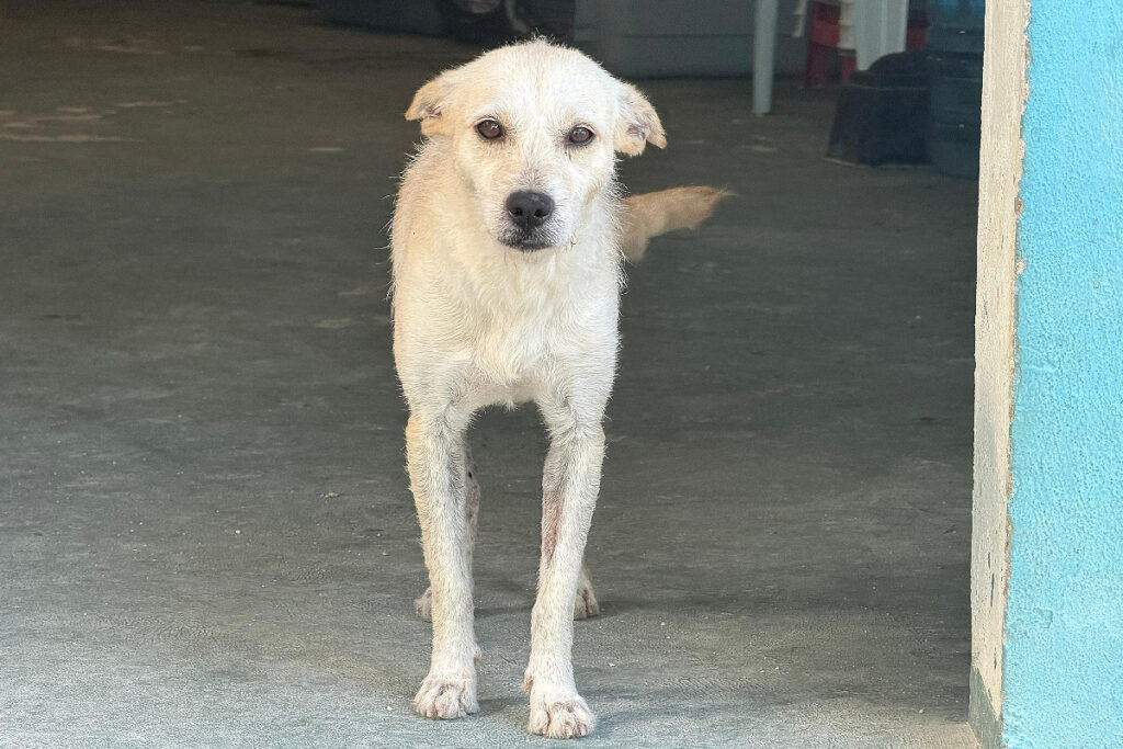 Deja came with Farah and Benito… they were living in the streets and clearly not doing well. She has a lot of skin issues, wounds and seems to have had many many litters. She is now relaxing in a safe place, enjoying belly rubs and loving love!