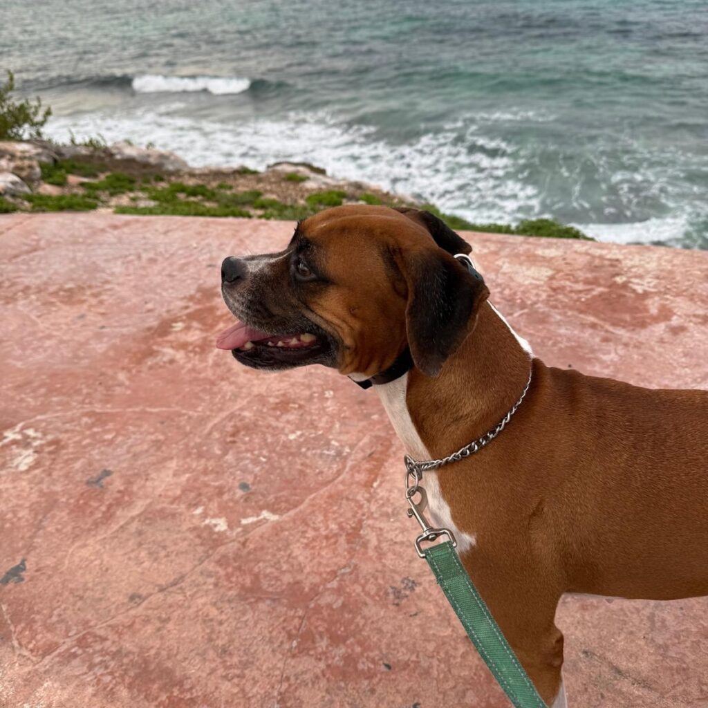 Why? Well, because Lucy, while she gets along fantastically with the resident dog and cat and loves her humans with passion, she’s reactive on the leash to strange dogs, this doesn’t happen all the time, seems to be a few episodes now and then, and she is a Boxer mix… while her current mom has experience with the breed, Lucy seems to make herself the boss and while usually listens very well, on the leash with strange dogs around (and she lives on Isla Mujeres so most dogs are offleash) she has a hard time.