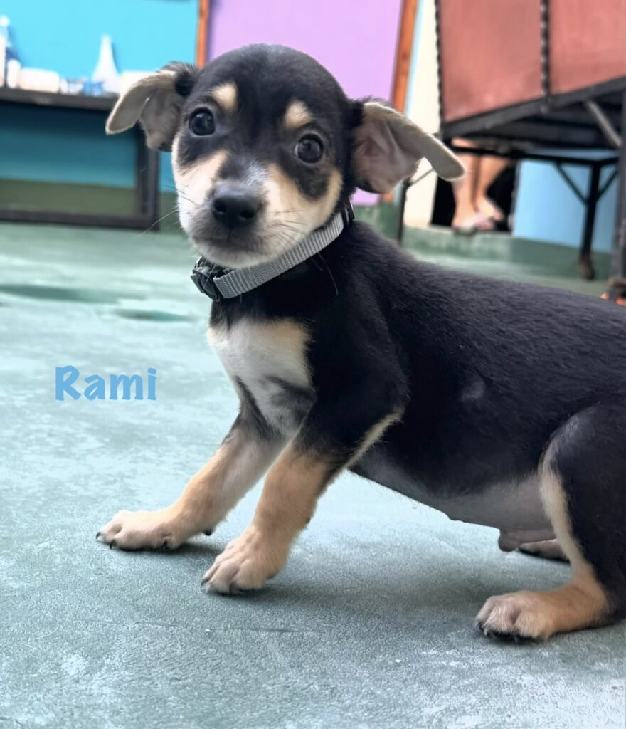 Rami is part of our Lucky 13 pups. We rescued 2 litters that were born at the same time (mommas are 8kg and 14kg but we don’t know which puppy belonged to which mommy!)
