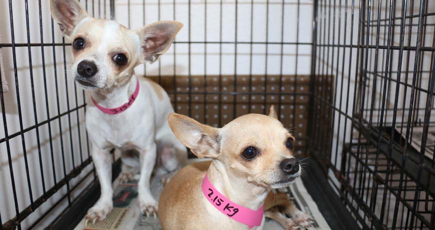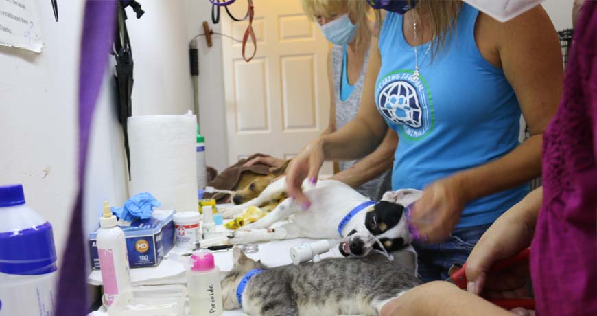 People come one by one with their pets. We weigh them and tag them. Next one!